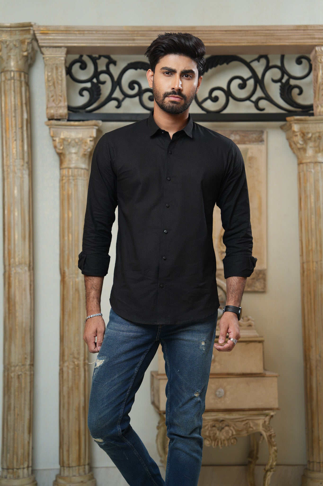 Timeless, versatile, and effortlessly sharp—this solid black long sleeve shirt is a must-have staple for the modern wardrobe. Tailored in a slim fit for a sleek, contemporary silhouette, it’s crafted from soft, breathable fabric for all-day comfort. The clean design makes it easy to dress up or down—perfect for casual Fridays, evening outings, or smart layering under a blazer. A go-to essential that never goes out of style.